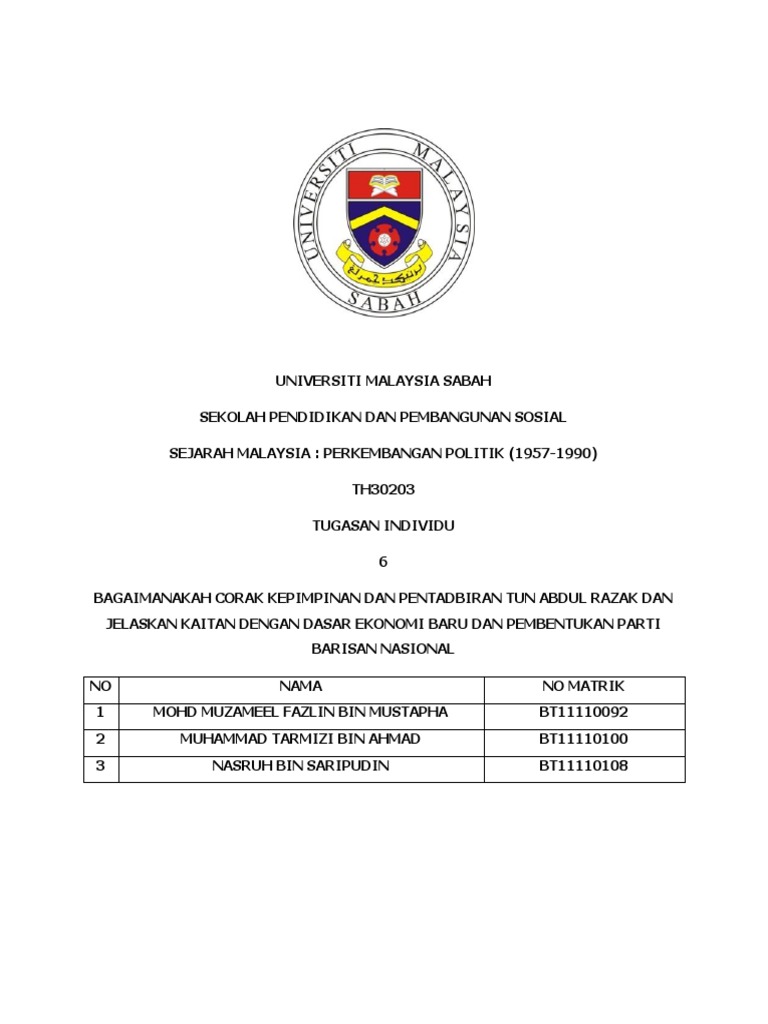 Tun Abdul Razak Datuk Hussein Docx Tun Abdul Razak Datuk Hussein Nama Nur Sarah Binti Jauhari No Pelajar 2019405842 Pengenalan Biodata Tun Abdul Razak Course Hero