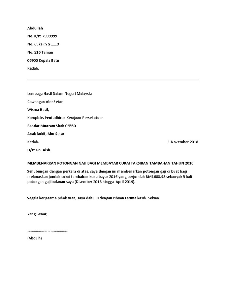 Contoh Surat Kebenaran Lhd Potong Gaji