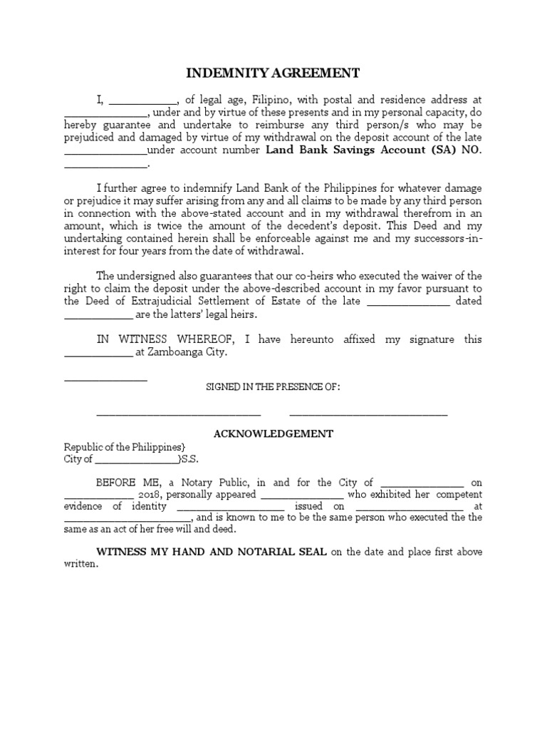 Affidavit Of Quitclaim With Indemnity Undertaking 1