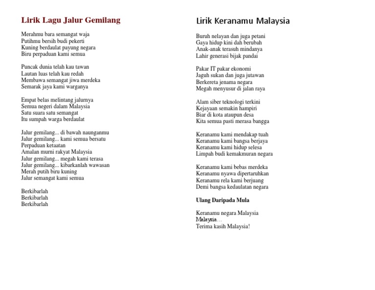 Lirik Lagu Jalur Gemilang Docx