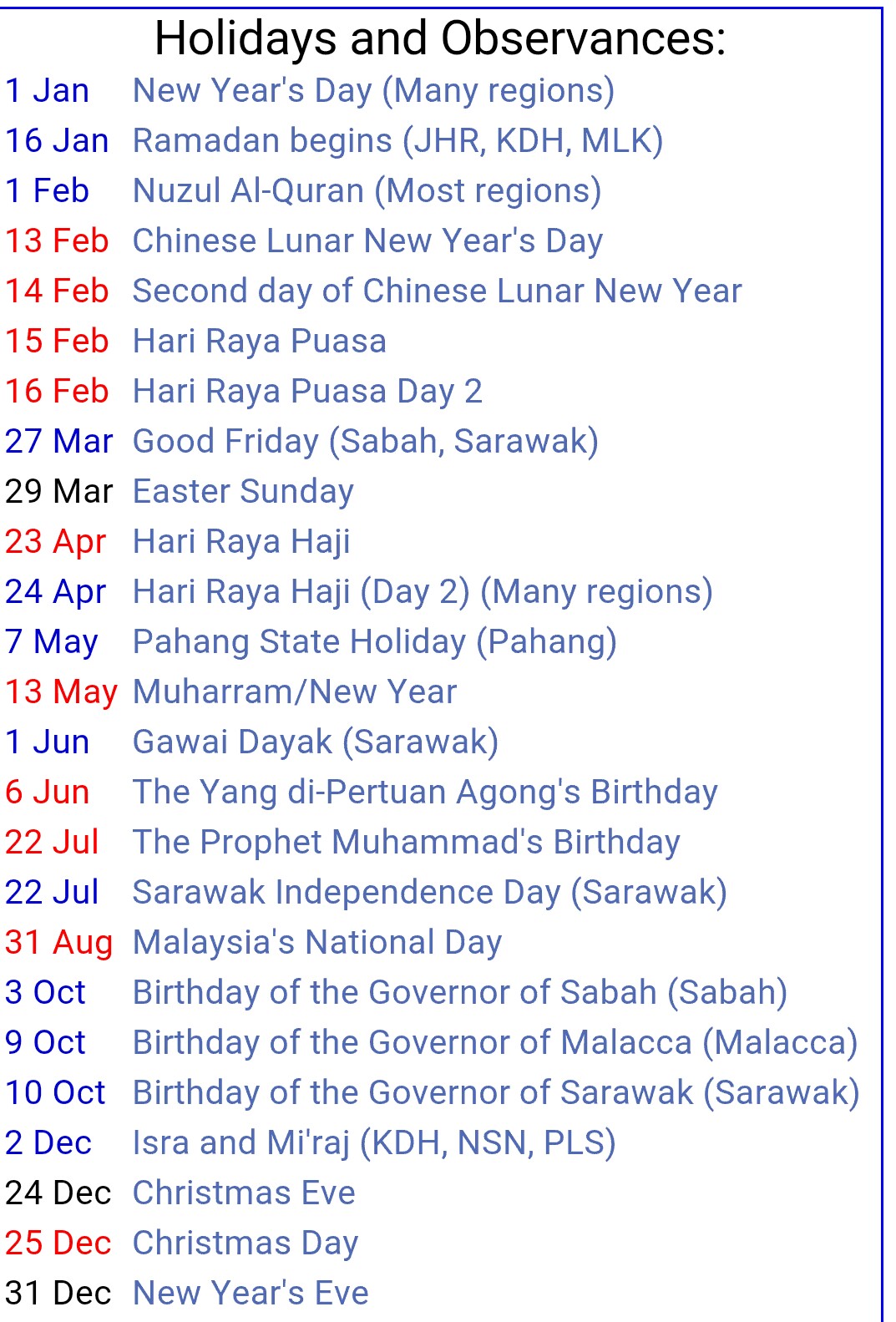 2020 Sarawakian Public Holidays Not Your Average Millennial Blog