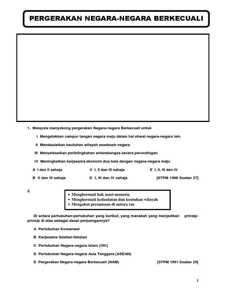 Sijil Tinggi Persekolahan Malaysia Malaysia D Pergerakan Negara Negara Berkecuali Nam 19 Yang Manakah Yang Diperjuangkan Oleh Malaysia Untuk Menangani Isu Isu Sosioekonomi Antarabangsa Pdf Document