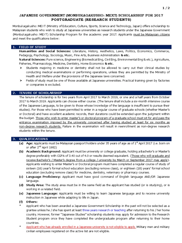 Study In Malaysia On Twitter Japanese Government Monbukagakusho Mext Scholarship For Japanese Studies 2017 For Malaysian Nationals Apply At Https T Co Wkfaybvgci Https T Co Appclq17uf
