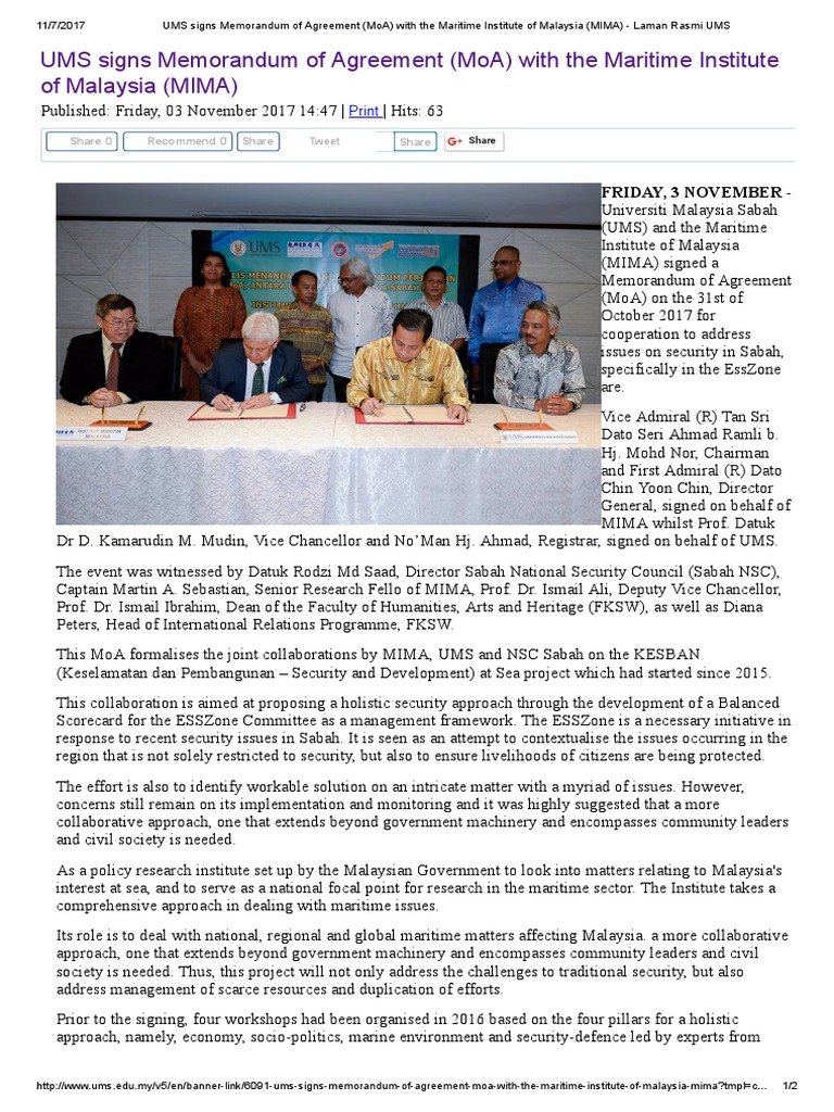 Ums Signs Memorandum Of Agreement Moa With The Maritime Institute Of Malaysia Mima Malaysia Politics
