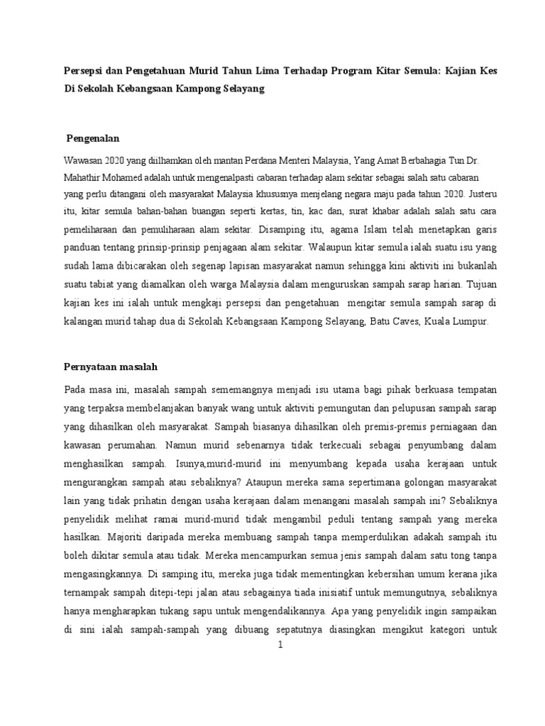 Sikap Murid Tahap 2 Terhadap Program Kitar Semula Kajian Kes