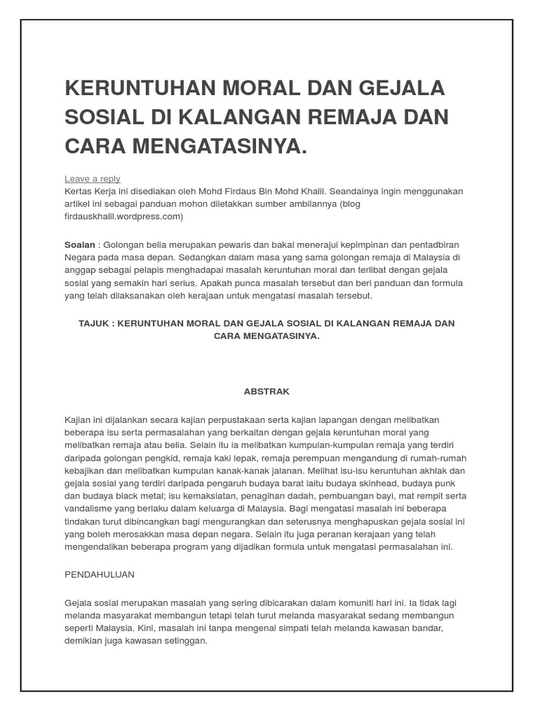 Pada era globalisasi ini masalah sosial dalam kalangan remaja semakin membimbangkan semua pihak masalah sosial seperti mengambil dadah ponteng sekolah merokok dan sebagainya telah menyebabkan keruntuhan akhlak dalam diri remaja dan menjejaskan masa hadapan mereka. Studi yang dilakukan oleh pew research center terhadap remaja di amerika serikat itu juga mengungkap masalah gangguan mental itu ditemui pada remaja dari berbagai status sosial dan gender. Masa remaja adalah masa peralihan transisi dari masa anak anak menuju masa remaja. Permasalahan remaja pencegahan dan cara mengatasinya.