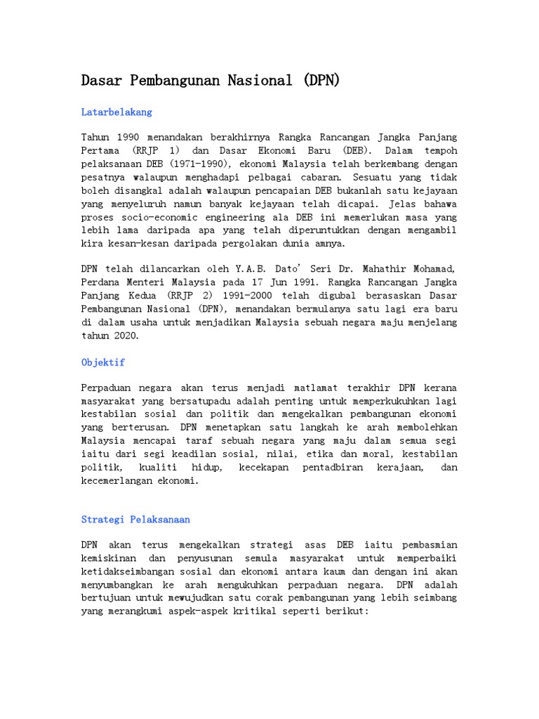 Dasar Pembangunan Nasional Docx Document