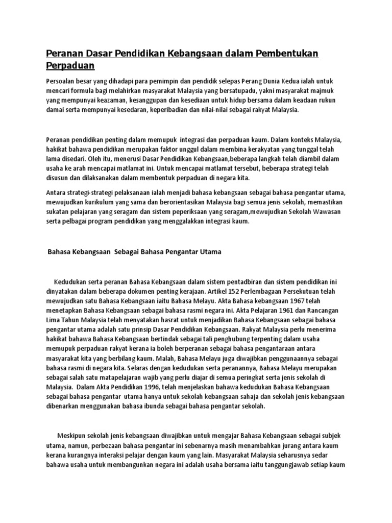 Artikel Pendidikan Dan Proses Perpaduan Di Malaysia Studocu