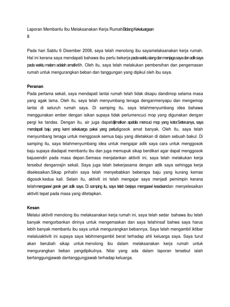 Laporan Membantu Ibu Melaksanakan Kerja Rumahbidang Kekeluargaan Docx