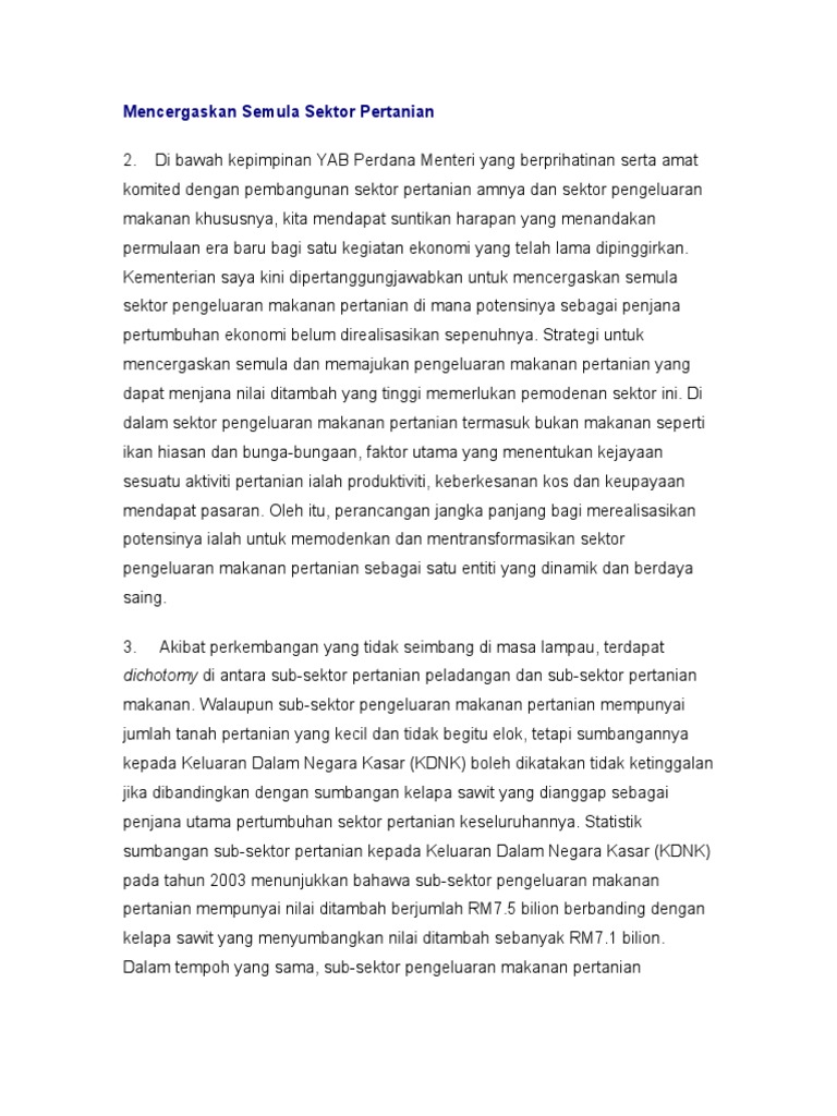 Kepentingan Sektor Pertanian Kepada Negara