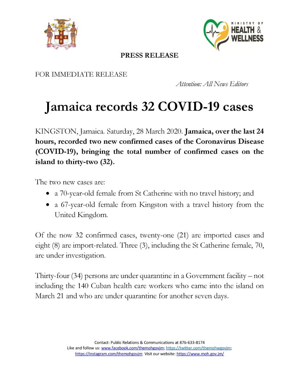 Ministry Of Foreign Affairs And Foreign Trade Goj On Twitter Jamaica Records 32 Covid 19 Cases
