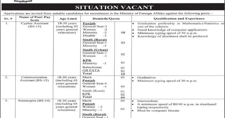 Ministry Of Foreign Affairs Pakistan June 2020 Latest Jobs Dailyjobz