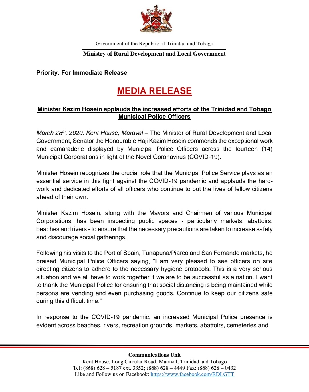 Mordlg Tt On Twitter Mediarelease Minister Kazim Hosein Applauds The Increased Efforts Of Trinidad And Tobago Municipal Police Officers Municipalpolice Publichealth Localgovernment Puttingpeoplefirst Mordlg Https T Co Camlfkllut