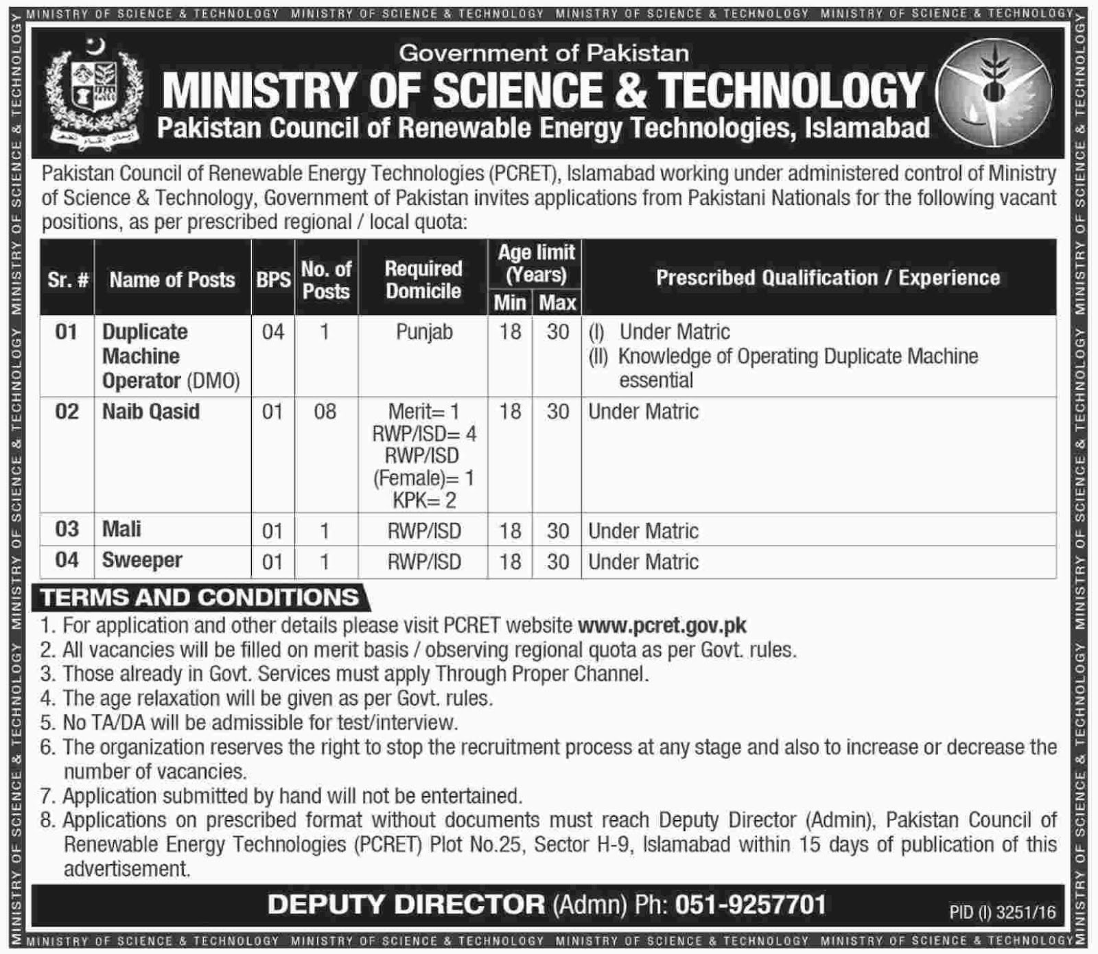 Jobs In Pakistan Govt Jobs In Ministry Of Science Technology Pakistan Jan 2017