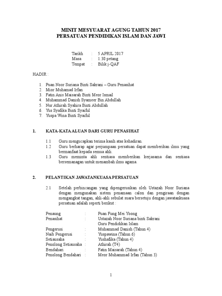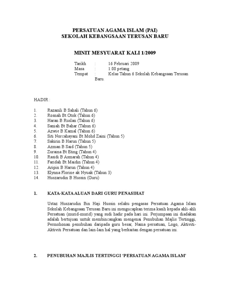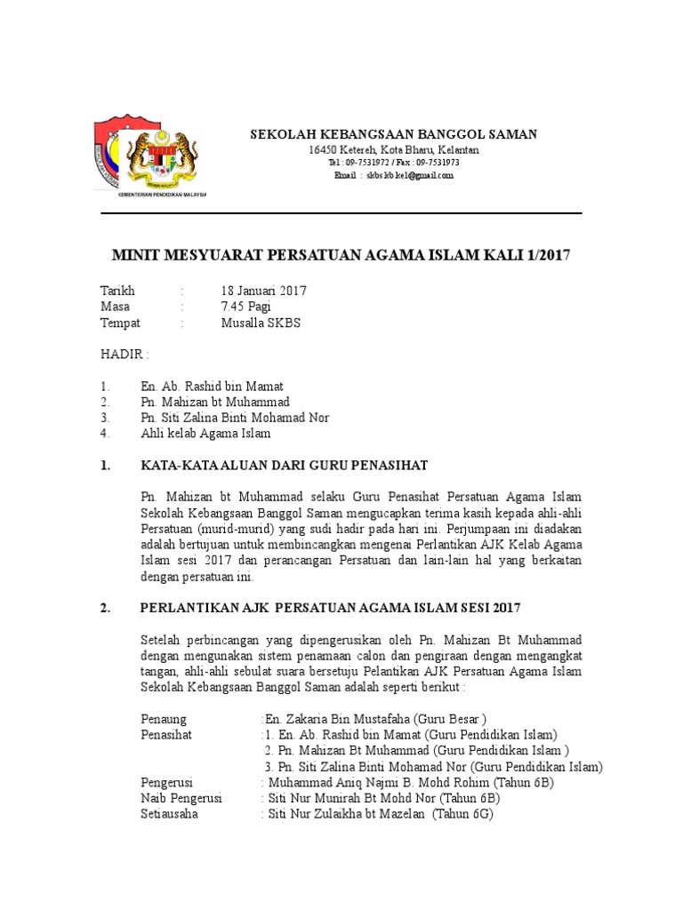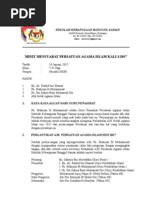 Minit Mesyuarat Persatuan Agama Islam Doc Persatuan Agama Islam Sekolah Kebangsaan Kebangsaan Seri Padang Sari Minit Mesyuarat Kali 1 2020 Tarikh Masa Course Hero