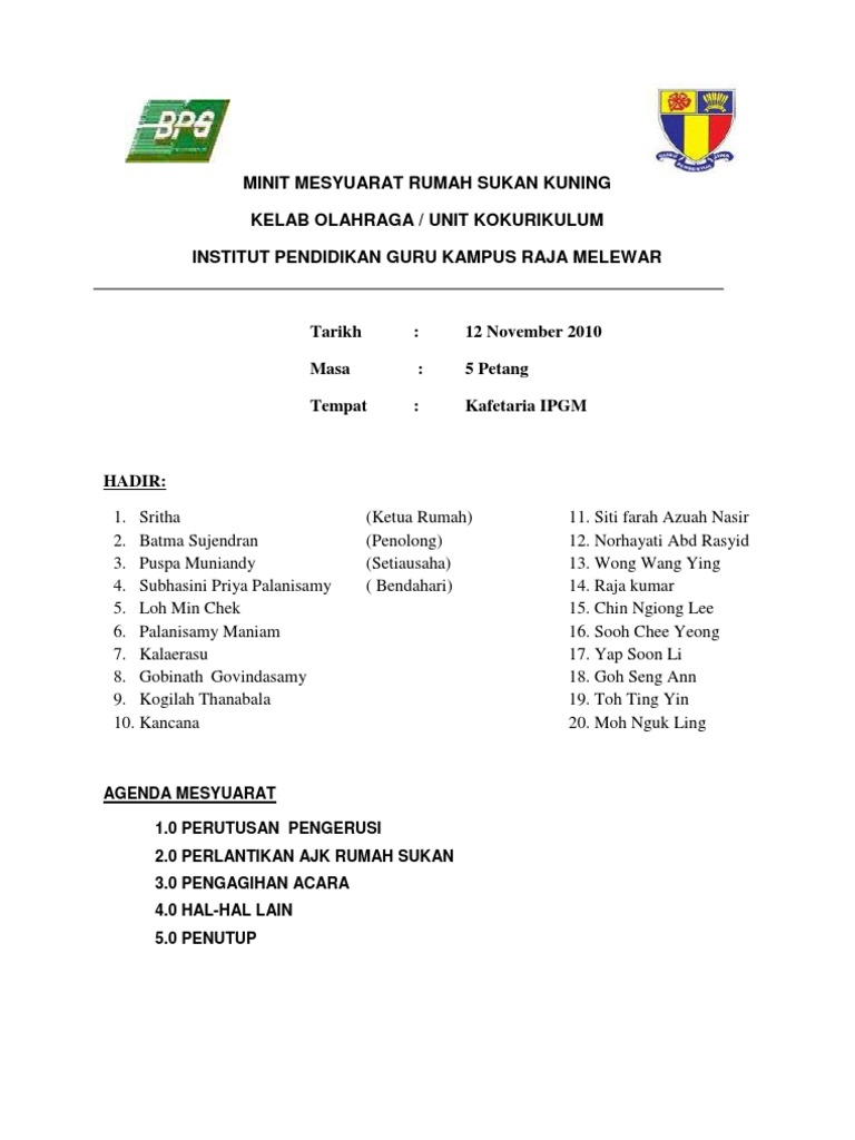 Doc Minit Mesyuarat Kokurikulum Maya Diana Academia Edu