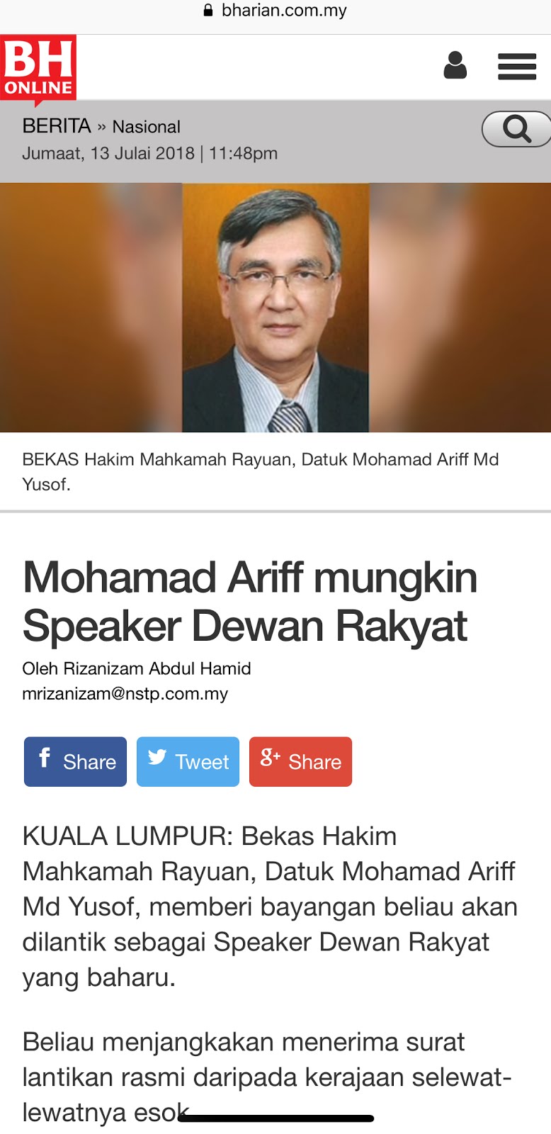 Bfm News On Twitter Profile Of Dewan Rakyat Speaker Datuk Mohamad Ariff Md Yusof