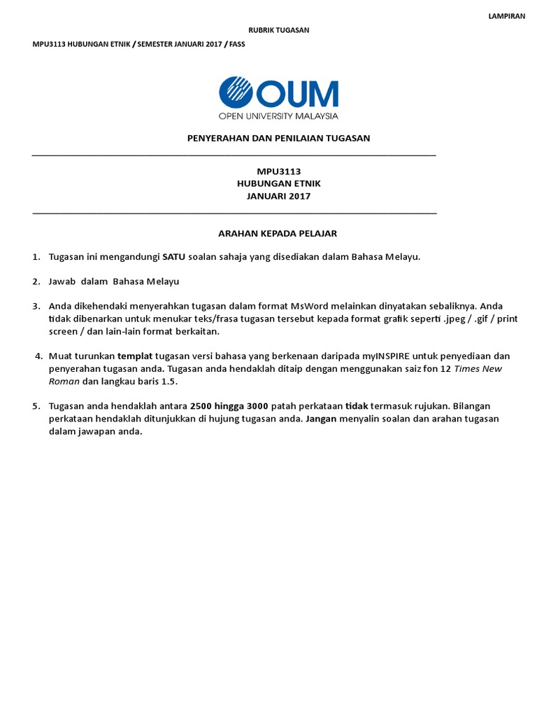 Mpu3113 Hubungan Etnik Pdf Fakulti Sains Sosial Gunaan Mpu3113 Hubungan Etnik Copyright Open University Malaysia Oum Mpu3113 Hubungan Etnik Mohd Course Hero