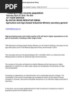 Malaysia Towards New National Agricultural Policy Agricultural Policy Agriculture