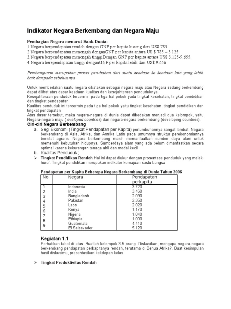 Sk 1 Kelas Ix Negara Berkembang Dan Negara Maju