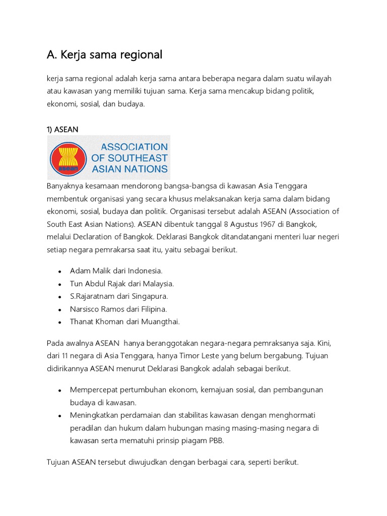 Contoh Bentuk Kerja Sama Negara Negara Di Kawasan Asia Tenggara Panduan Soal