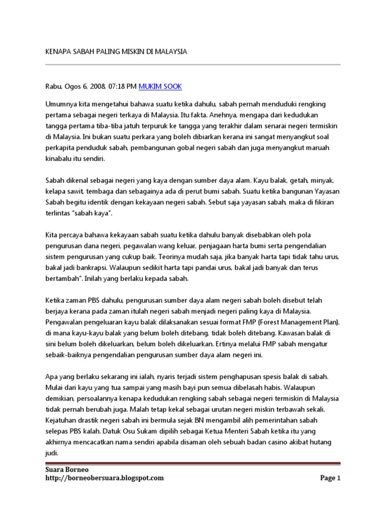 Sabah Ada Minyak Dan Balak Tapi Paling Miskin Dalam Malaysia Di Bawah Bn Selama Lebih 50 Tahun Jom Kita Baca