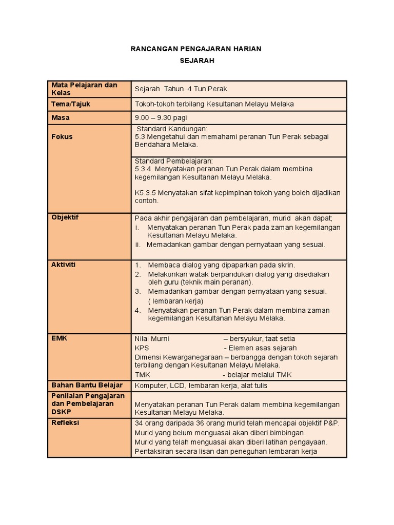 Doc Rancangan Pengajaran Harian Sejarah Putih Kertas Academia Edu
