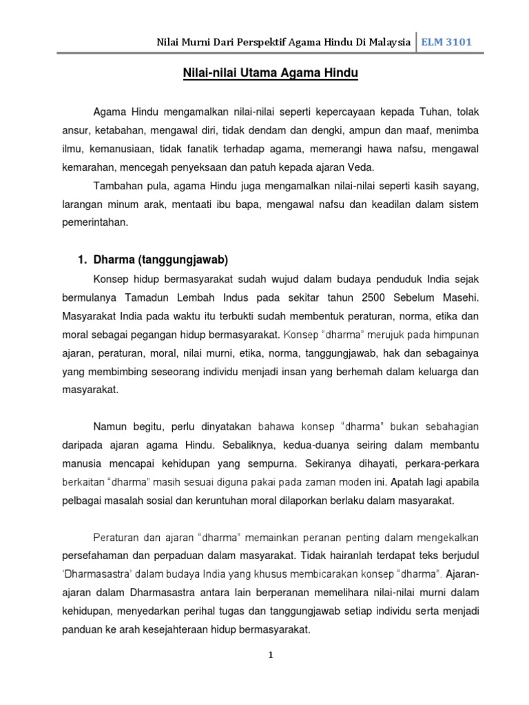 Nilai Utama Agama Hindu Docx