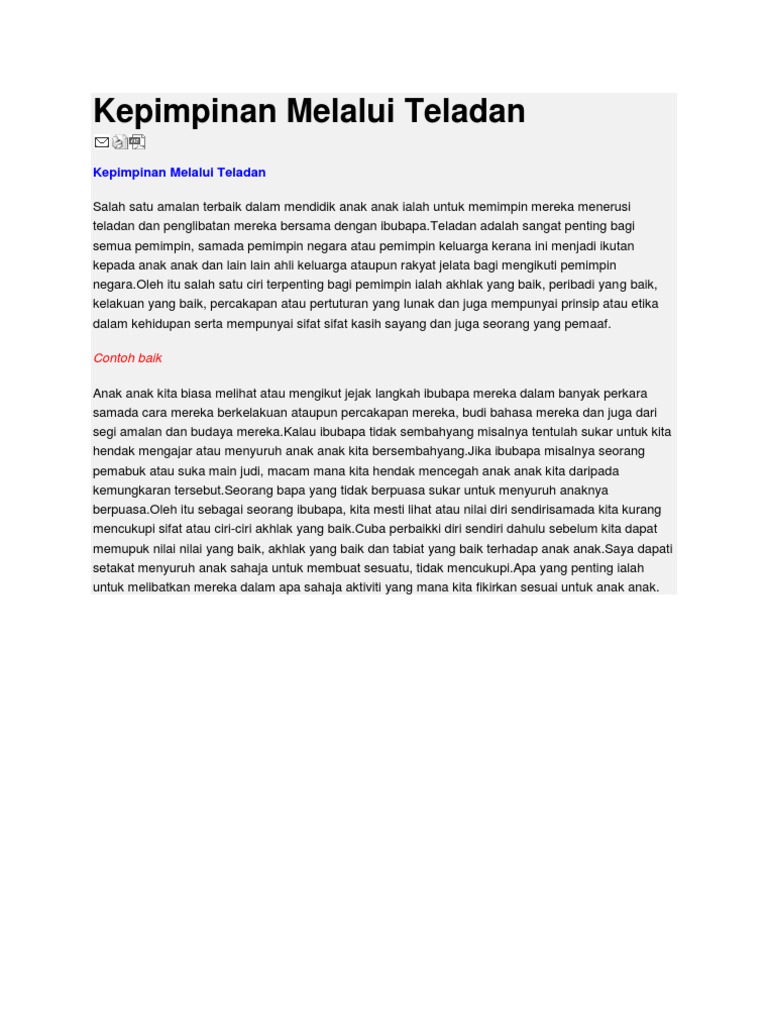 Huraikan Pendapat Anda Tentang Usaha Usaha Yang Dapat Dipetik Daripada Kepimpinan Melalui Teladan Pdf Document