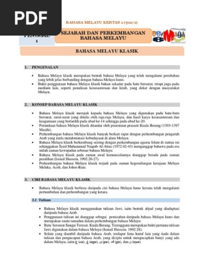Nota Ringkas Bahasa Melayu Klasik Stpm Penggal 1