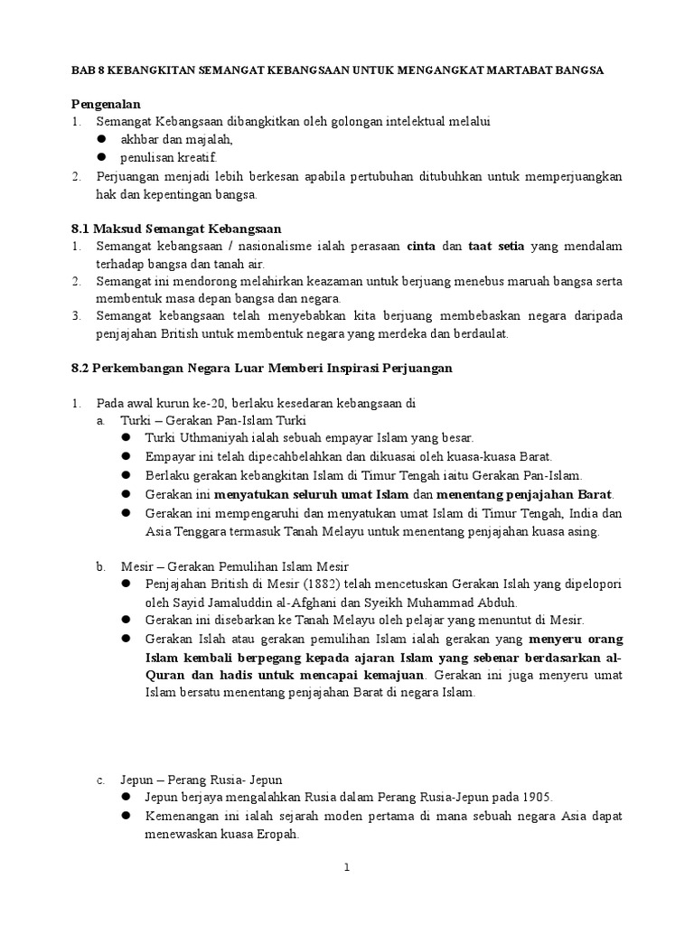 Nota Ringkas Sejarah Tingkatan 4 Kssm Bab 2 Kebangkitan Nasionalisme
