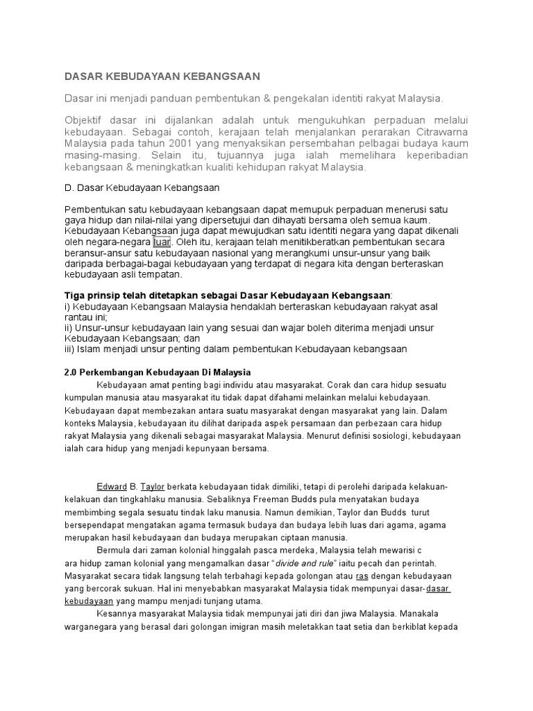 Dasar Kebudayaan Kebangsaan Dasar Negara Pengajian Am 2