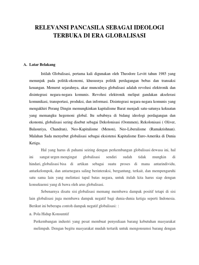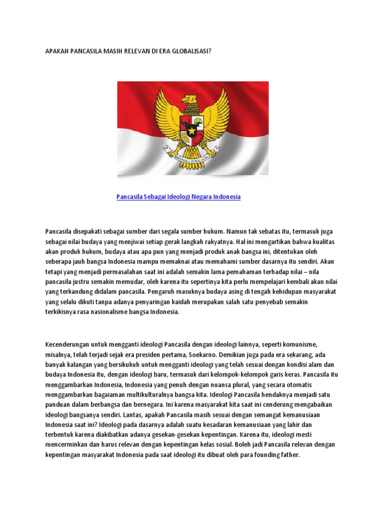 Relevansi Pancasila Sebagai Ideologi Terbuka Di Era Globalisasi Docx
