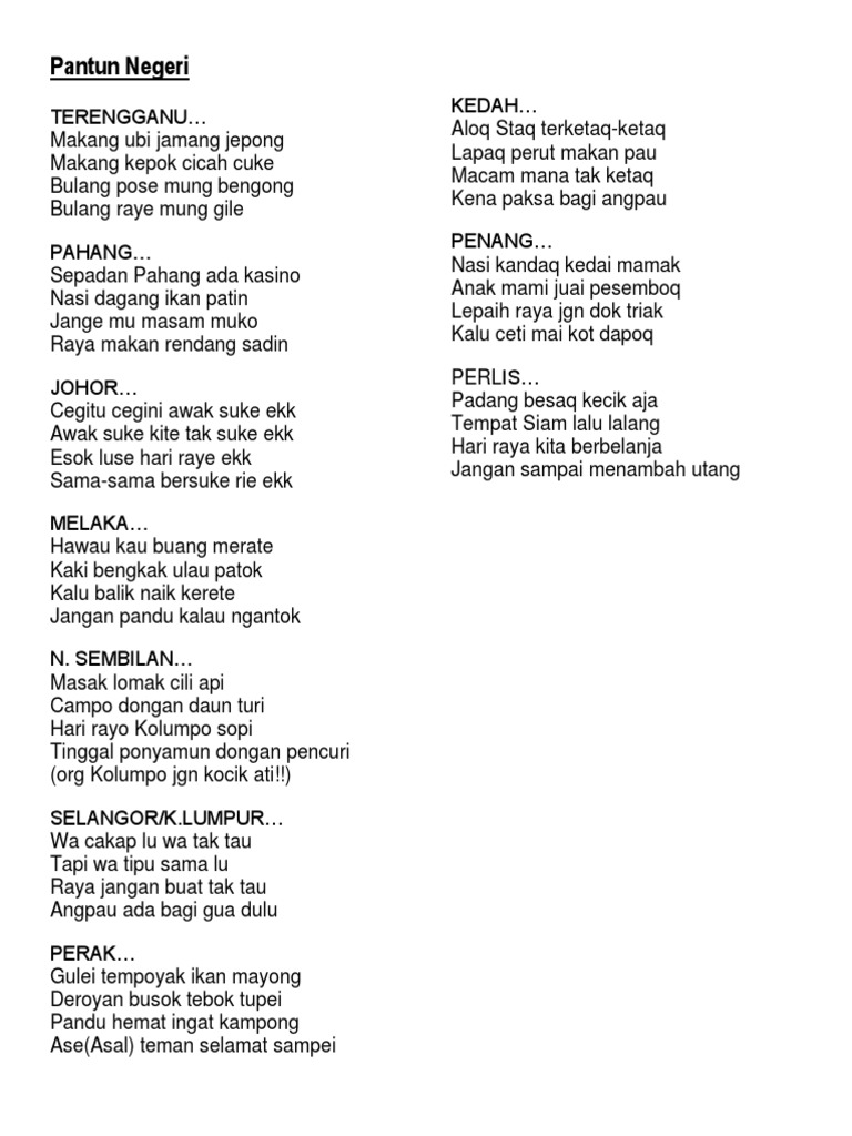 Pantun Raya Mengikut Loghat Bahasa Negeri 1001 Ucapan