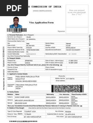 Indian Tourist Visa Application Form For Bangladesh Pdf Vincegray2014