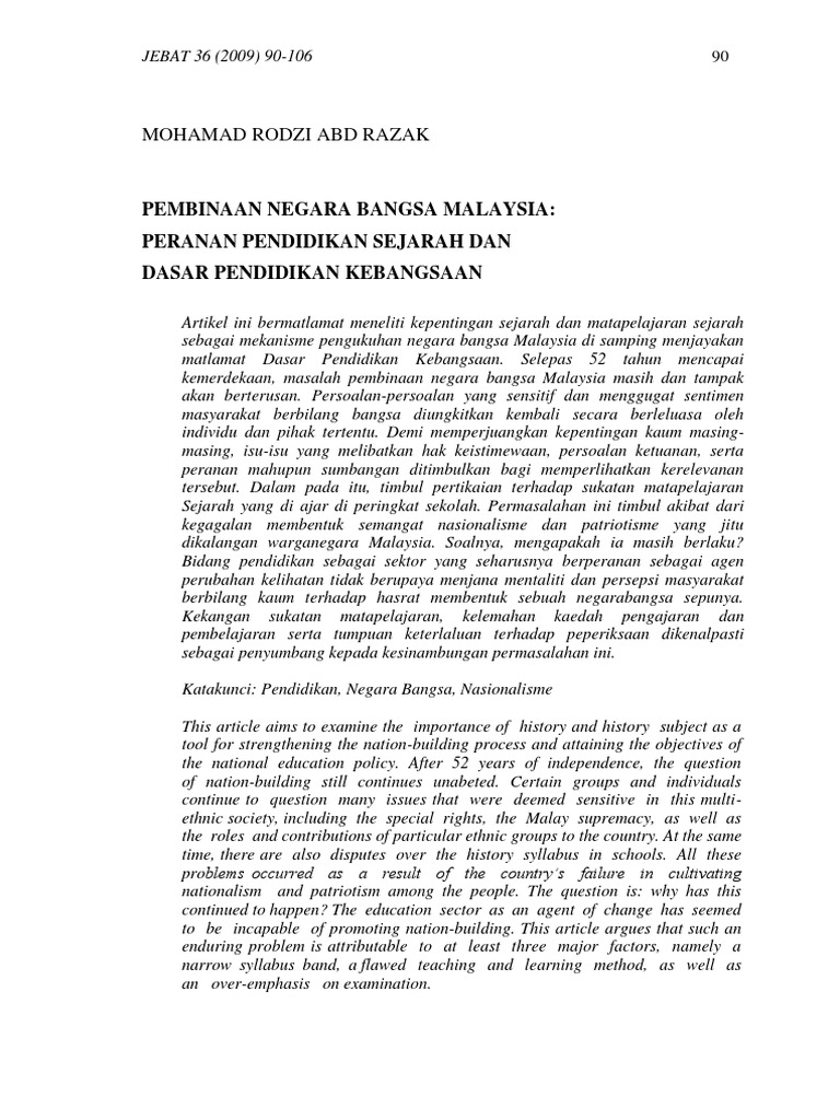 Mohamad Rodzi Abd Razak Pembinaan Negara Bangsa Malaysia Peranan Pendidikan Sejarah Dan Dasar Pendidikan Kebangsaan