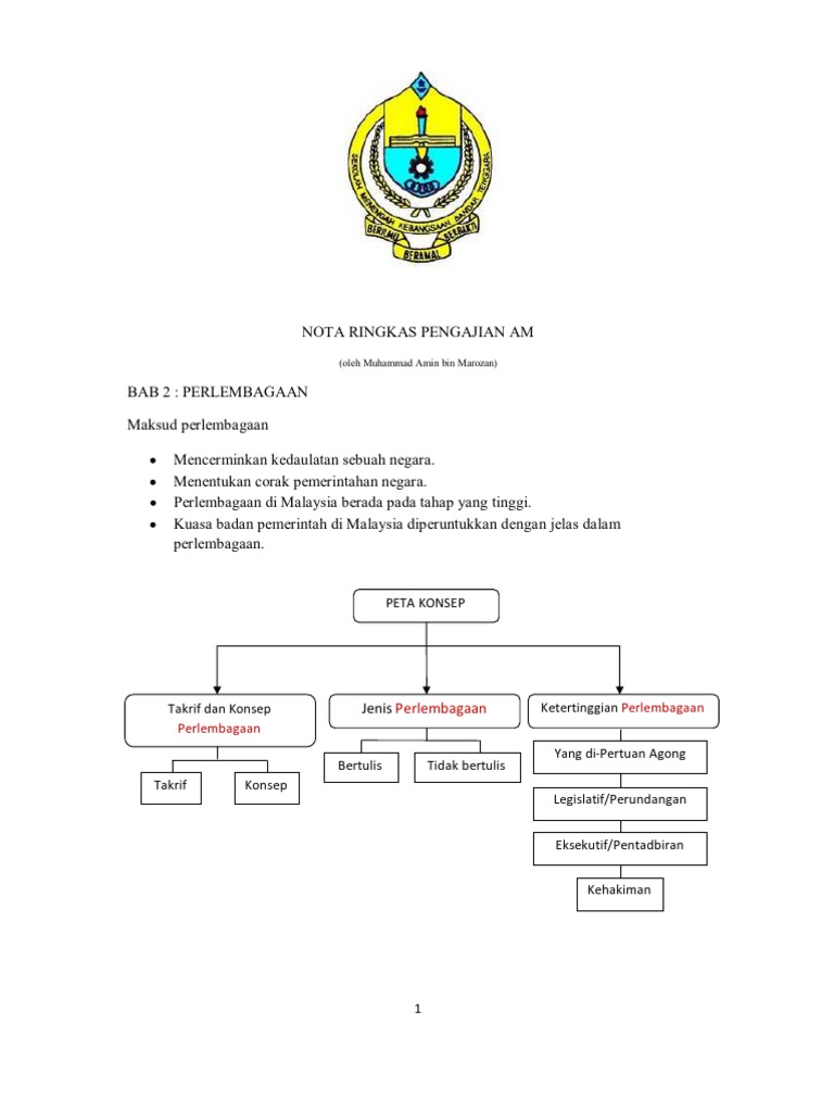 Nota Ringkas Pengajian Am Bab 2 Perlembagaan