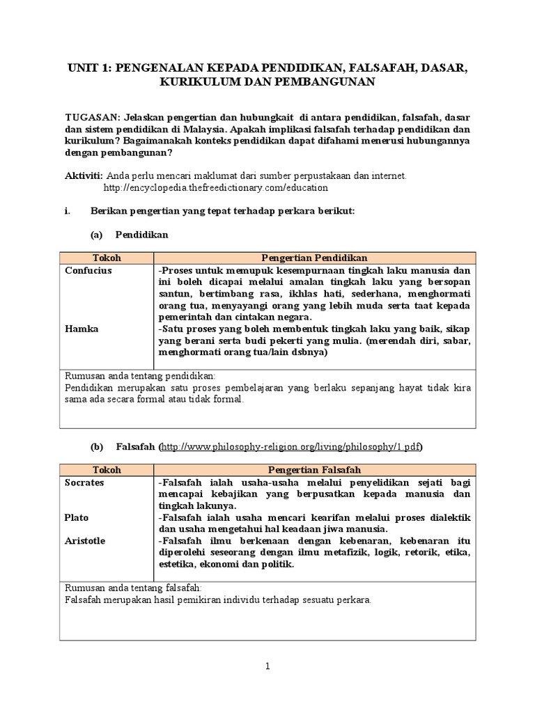 Unit 1 Group D Nama Gelcylliz Mitchel No Matrik D20151070667 Unit 1 Pengenalan Kepada Pendidikan Falsafah Dasar Kurikulum Dan Pembangunan Hasil Course Hero