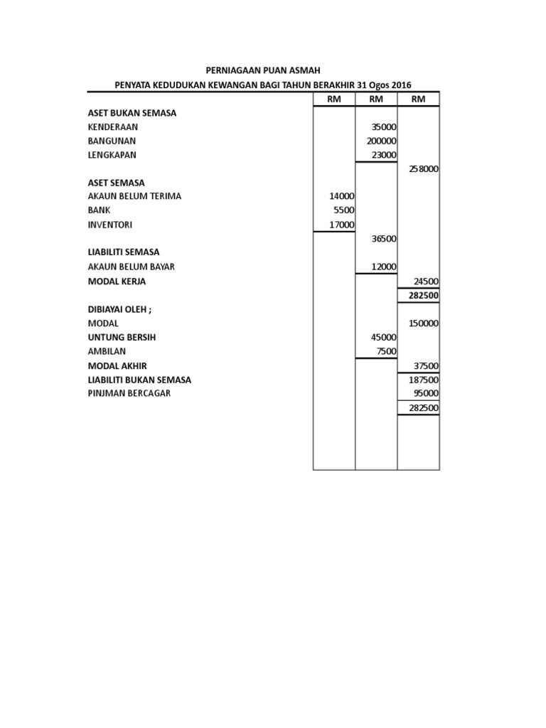 Penyata Kedudukan Kewangan In English