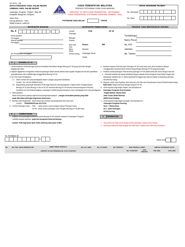 Penyata Saraan Potongan Cukai Pcb Cp 38 Lampiran B Excel