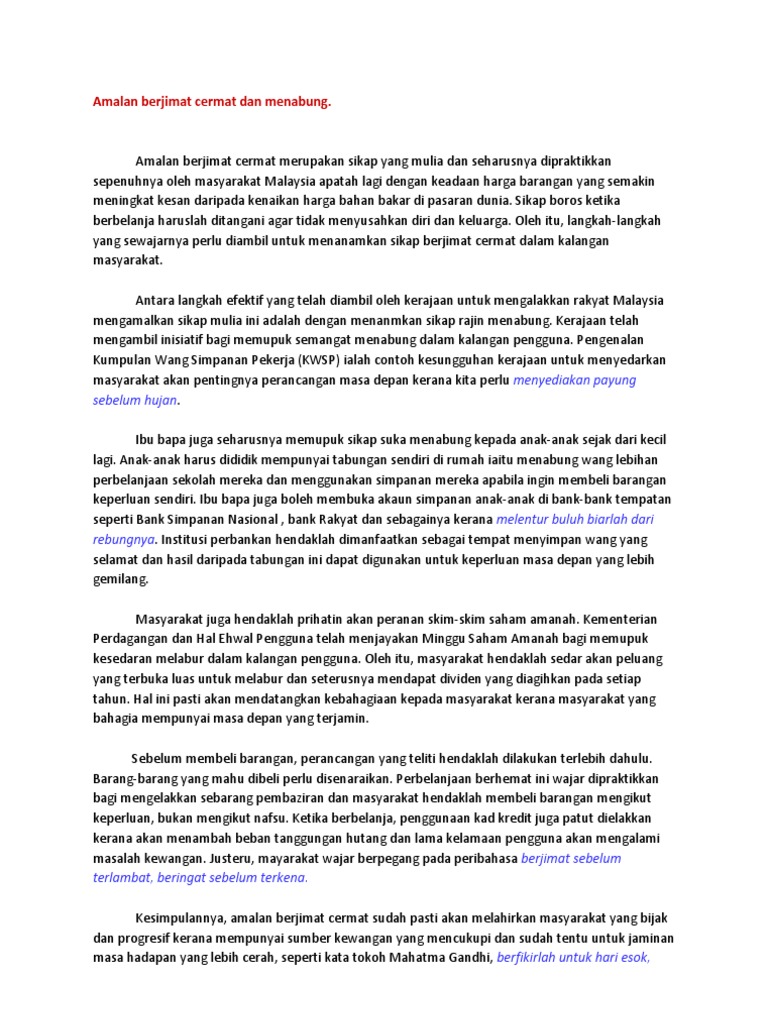 Cara Cara Memupuk Amalan Berjimat Cermat Doc