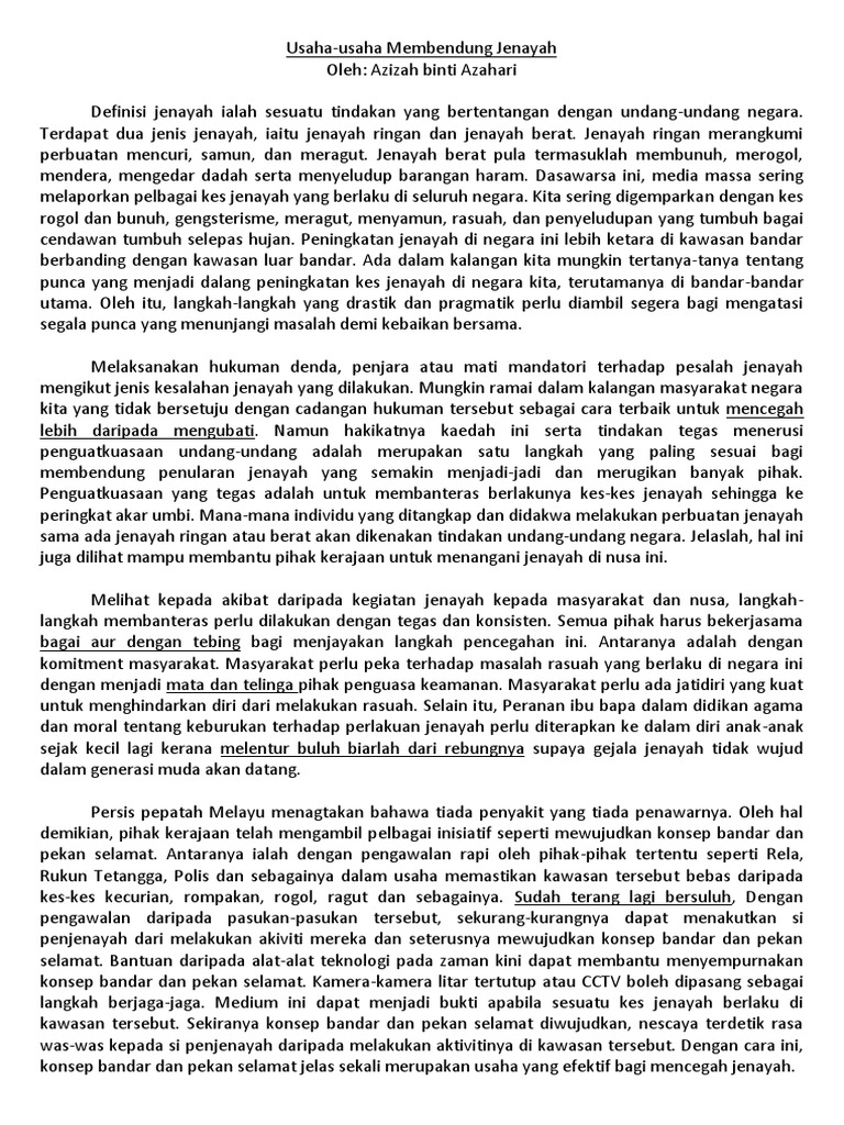 Karangan Peranan Masyarakat Dalam Mencegah Jenayah