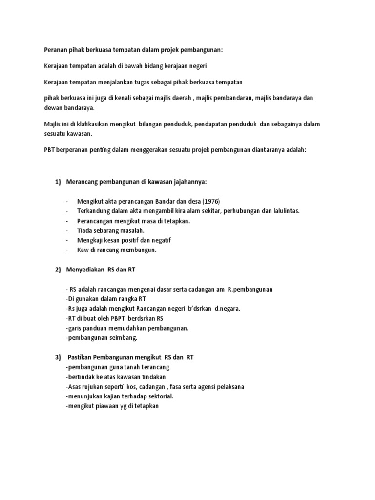 Kuliah 2 Peranan Pihak Berkuasa Tempatan Dalam Pembangunan Projek Pdf Document