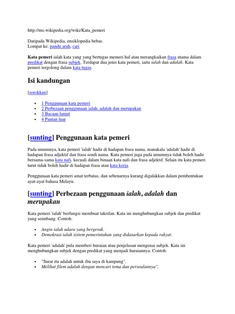Contoh Ayat Kata Pemeri Ialah Dan Adalah Materi Pelajaran 9