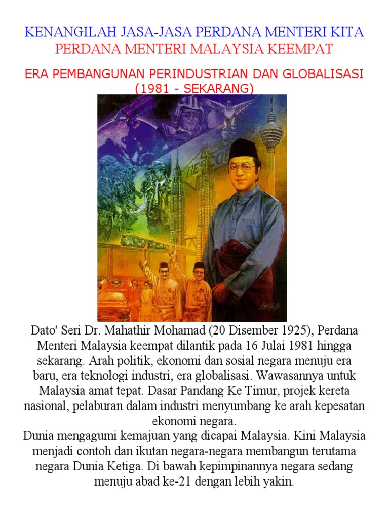 Perdana Menteri Malaysia Keempat Malaysia Ku Gemilang