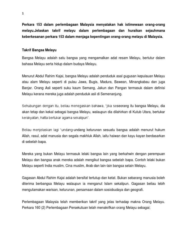Pdf Bincangkan Mengenai Hak Istimewa Orang Melayu Dalam Perlembagaan Malaysia