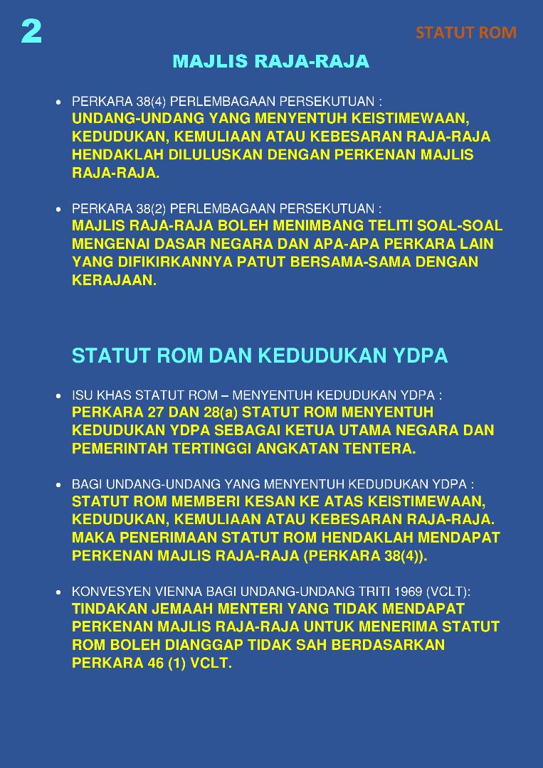 Perkara 38 Kuasa Majlis Raja Raja Menghalang Parlimen Membuat Undang Undang Yang Menyentuh Keudukan Raja Raja Melayu Orang Melayu Bahasa Melayu Dan Agama Islam