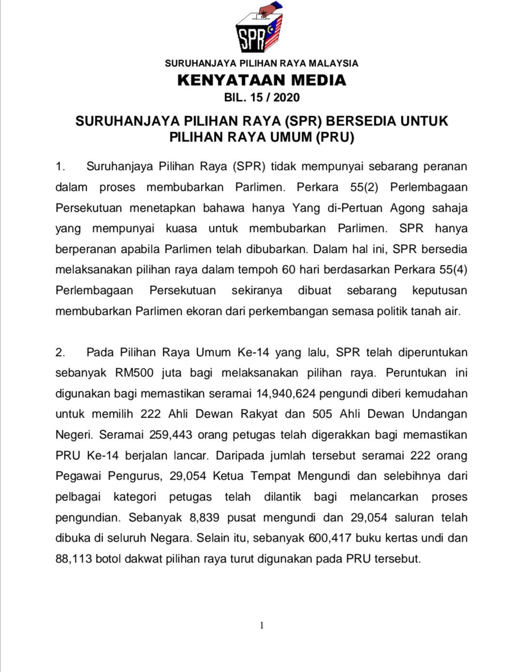 Bernama On Twitter Spr Bersedia Laksana Pru Dalam Tempoh 60 Hari Jika Ada Keputusan Parlimen Dibubar Pengerusi