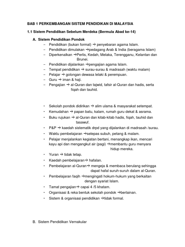 Bab 1 Perkembangan Sistem Pendidikan Di Malaysia Sebelum Merdeka