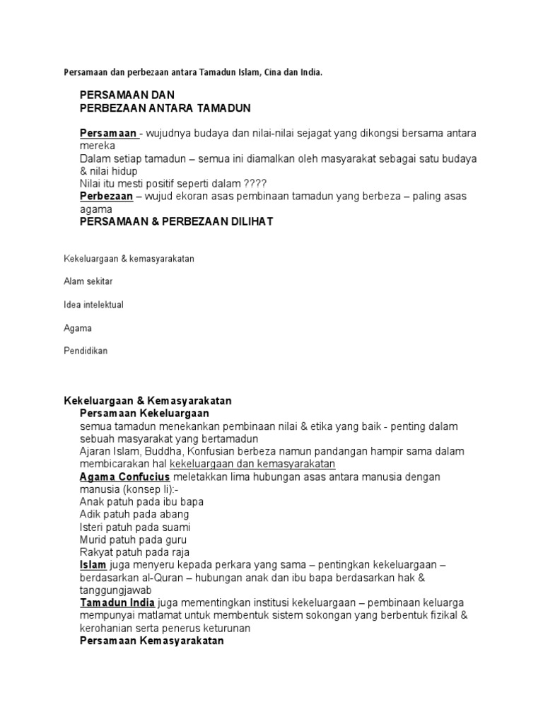 Persamaan Dan Perbezaan Tamadun Pdf Document